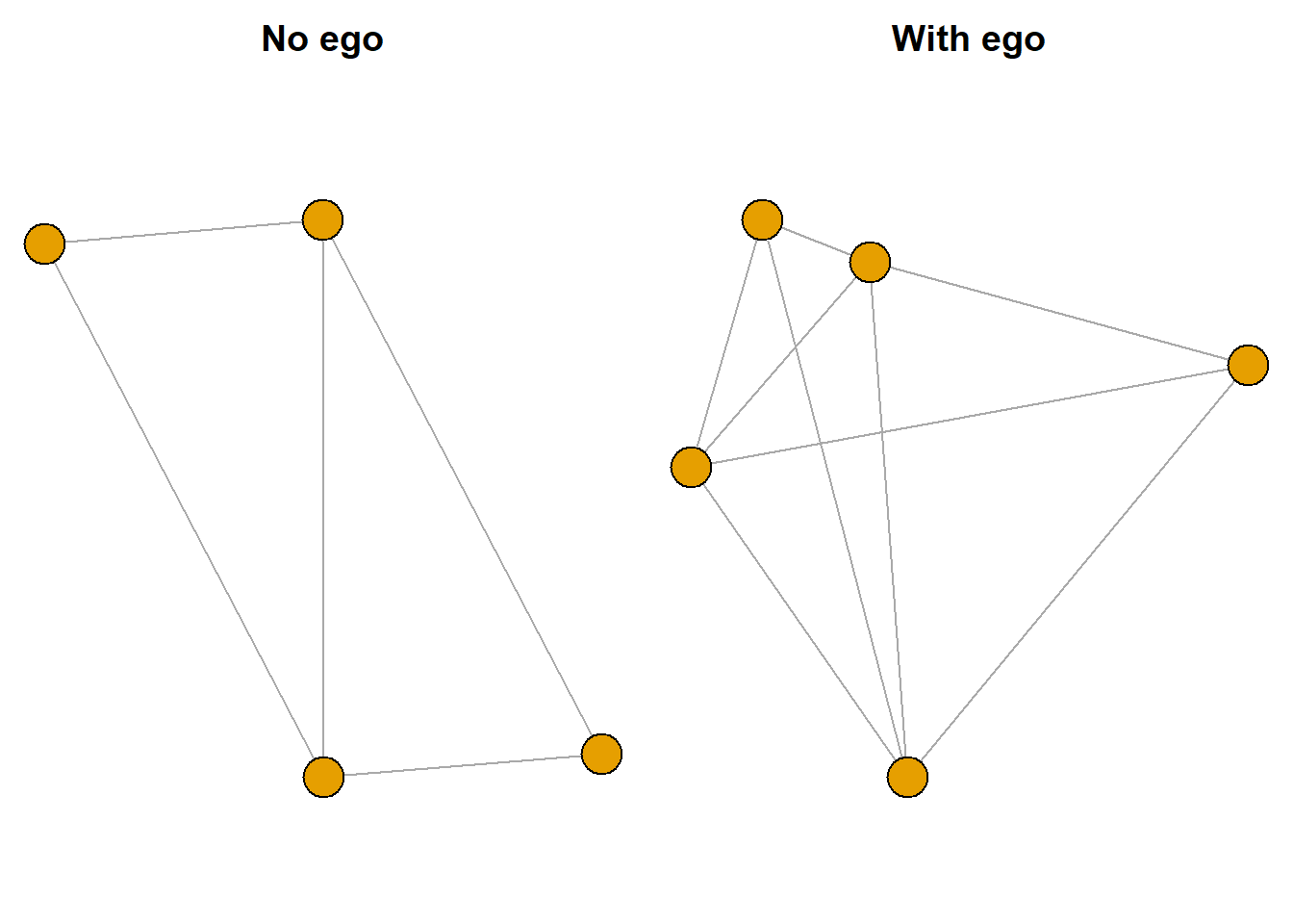 In the “With ego” graph, can you pick out which node is ego? Remember that ego will always be connected to all nodes in the graph.