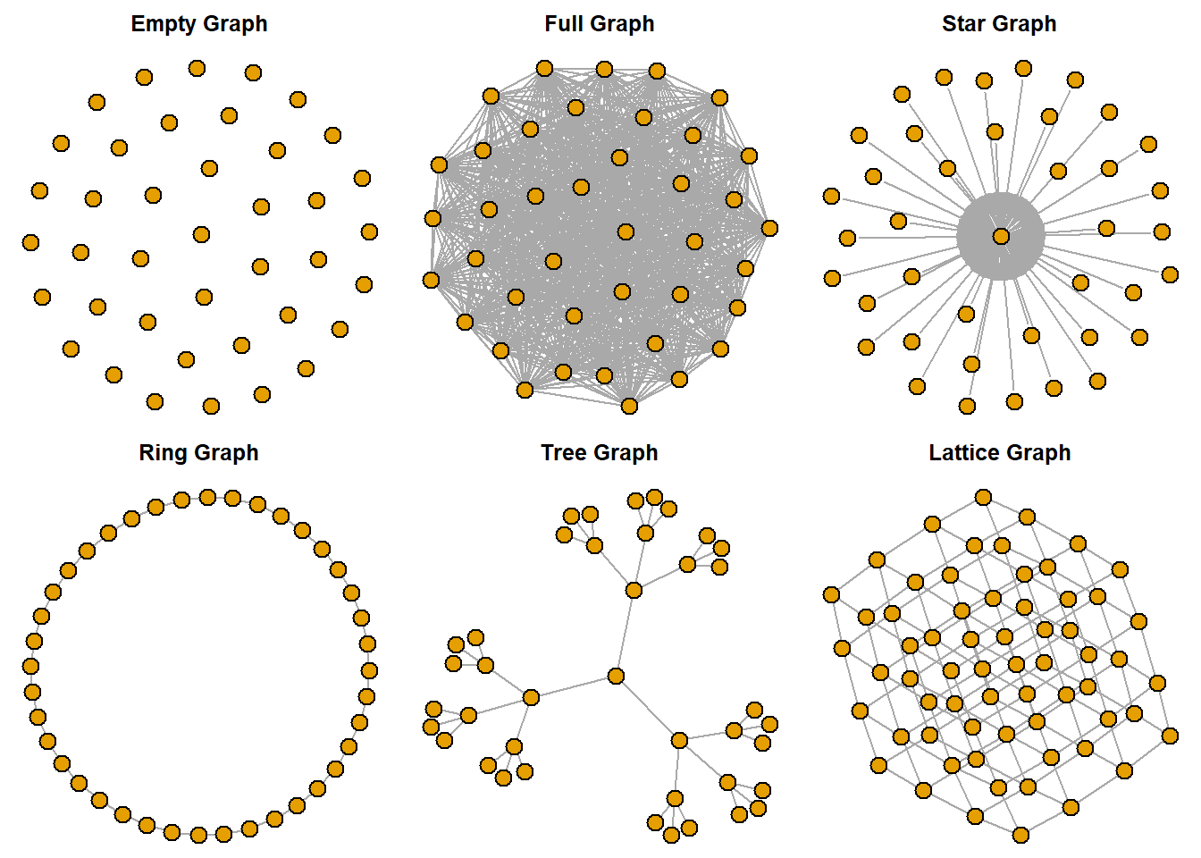 The igraph package includes numerous functions that can be used to generate different networks. For example…